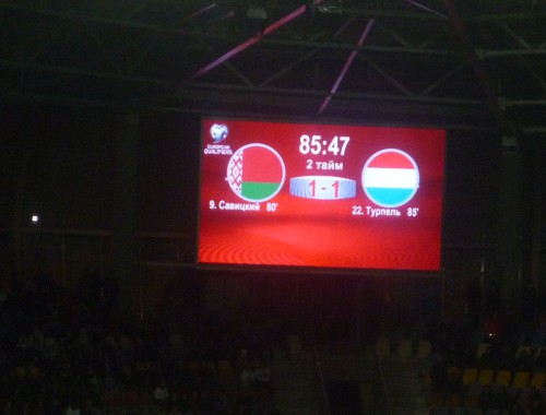 2 700 Spectateuren waren komm. Net grad vill, mee Futtball ass an Wäissrussland laang net esou populär wéi Äishockey. D’Stëmmung war also och éischter moer. Zum Match well ech net vill schreiwen. Mir hunn verdéngt 2-0 verluer, a mengen Aen virun allem wéinst dem Luc Holtz senger falscher Taktik. Woubäi ech kloer umierken well, datt ALL Trainer alt emol Feeler mécht. Ech halen ëmmer nach ganz vill vum Holtz senger Aarbecht.